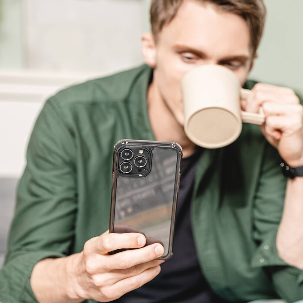 ALOS kapak, su damlaları olmadan gerçek bir şeffaflık sunar. AirBarrier teknolojisi, kılıf üzerinde noktalar oluşmadan su izlerini engeller, böylece iPhone'unuzun doğal güzelliği tamamen korunmuş olur. Ayrıca, ISO 22196 antimikrobiyal standardı ile sertifikalıdır ve %99 bakteri azaltma özelliğine sahiptir.