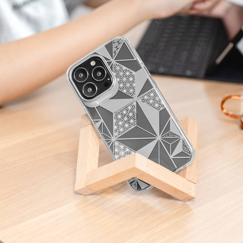 Apple iPhone 13 Pro Kılıf Çift IMD Baskılı Lisanslı Switcheasy Artist Asanoha Kapak Renksiz