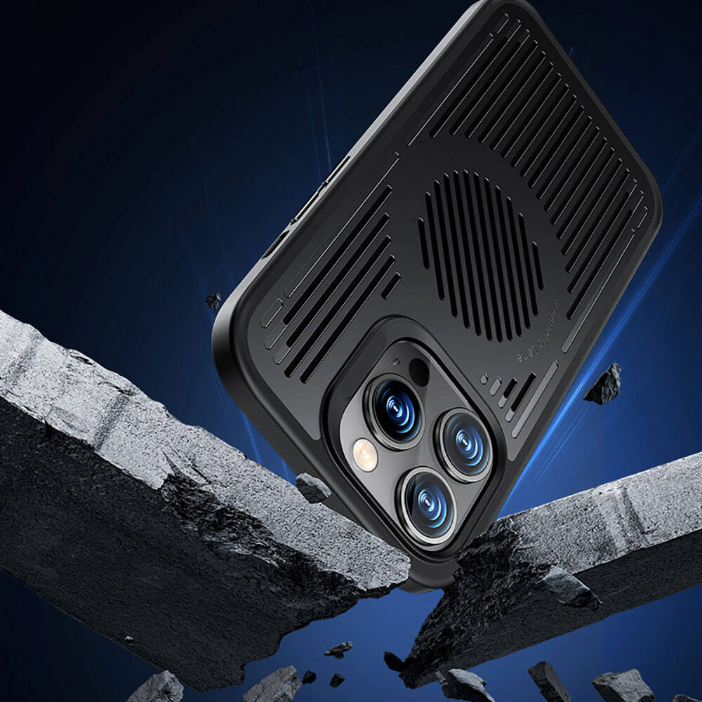 Kılıfın her yanındaki açıklıklar, daha iyi hava sirkülasyonu ve hızlı soğutma sağlar. Bu tasarım, cihazınızın her zaman optimal sıcaklıkta kalmasını sağlayarak, performansını artırır. Görünmez airbagli köşe yapısı ve yüksek geri tepme çerçeve koruması ile cihazınızı düşme ve darbelere karşı üstün bir şekilde korur.