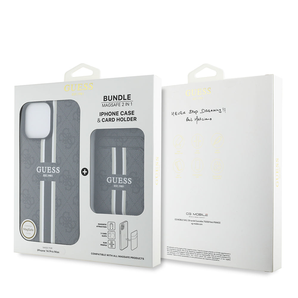 iPhone 14 Pro Max Kılıf Guess Orjinal Lisanslı Magsafe Şarj Özellikli 4G Desenli Çizgili Kartlıklı Kapak