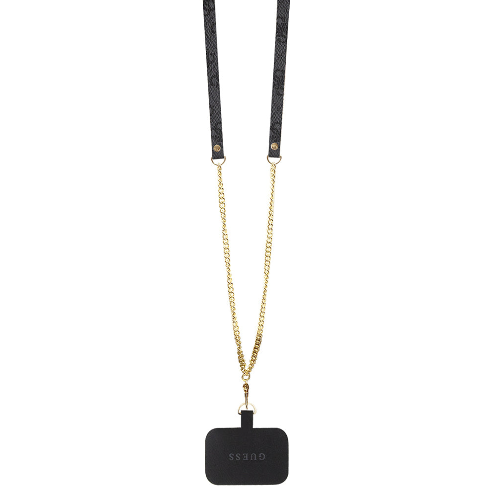 Apple iPhone 14 Pro Max Kılıf Guess Orjinal Lisanslı PU Deri Taşlı Metal Üçgen Logolu Çapraz Vücut Askılı 4G Desenli Kapak Siyah