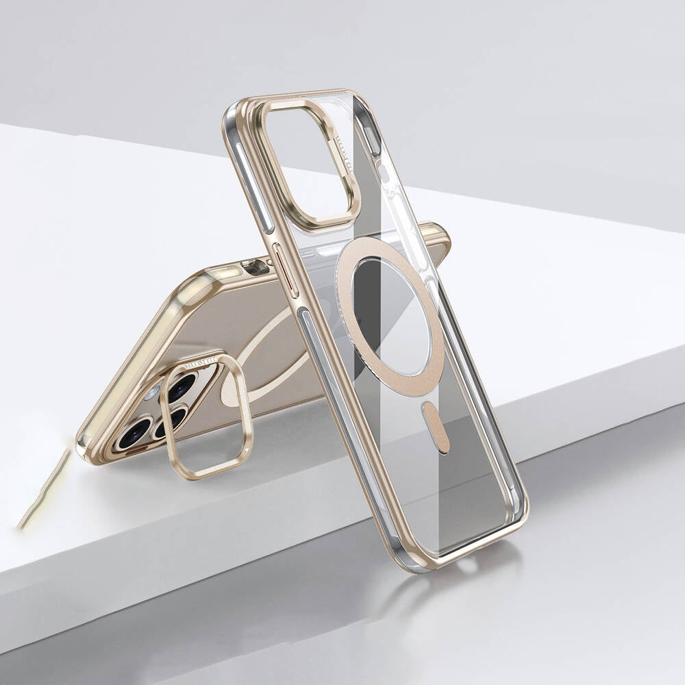 Apple iPhone 14 Pro Max Kılıf M-safe Şarj Özellikli Wlons Standlı Efsane Kapak Gold