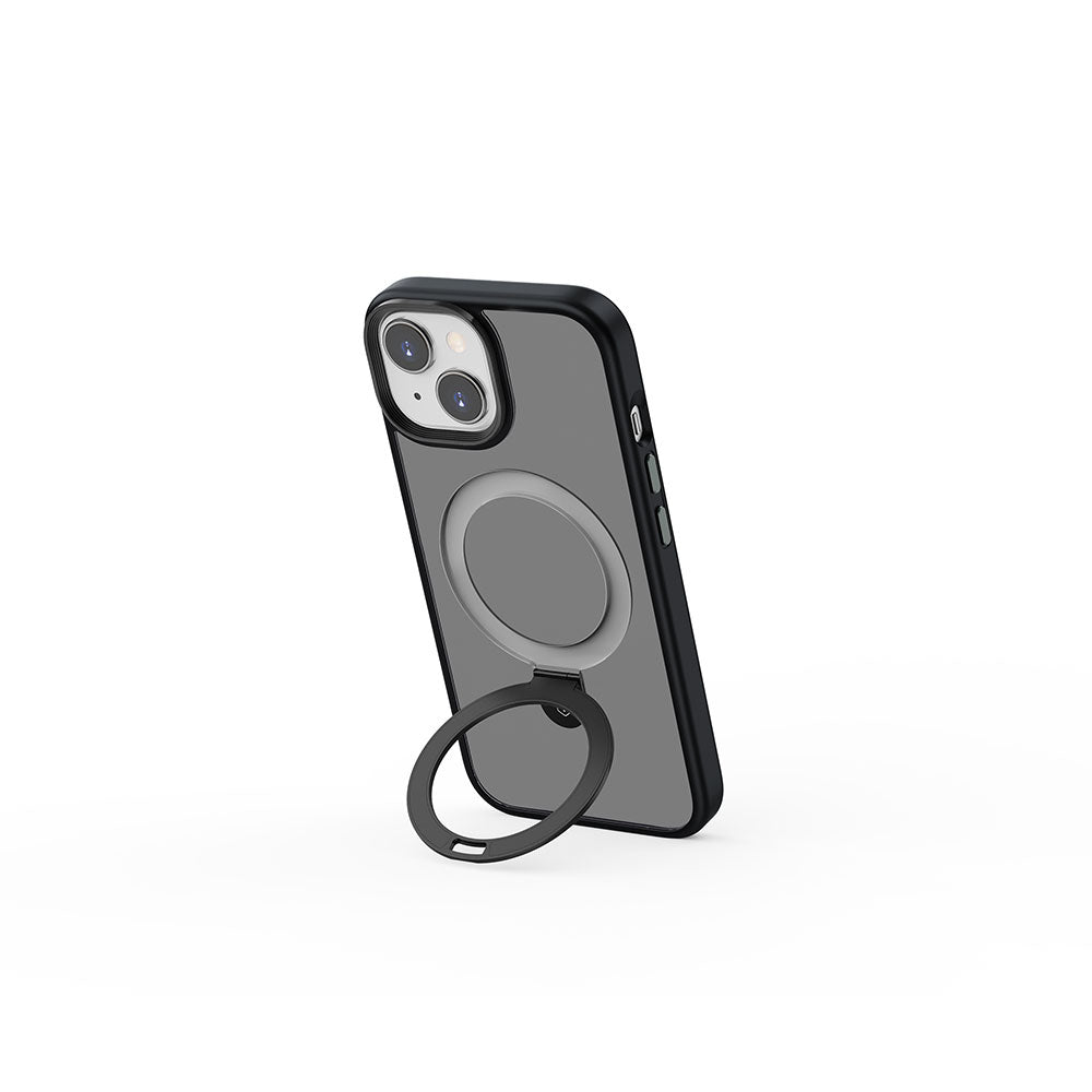 Apple iPhone 15 Plus Kılıf Wiwu ZMM-010 M-safe Şarj Özellikli Mat Arka Yüzey Standlı Kapak Siyah