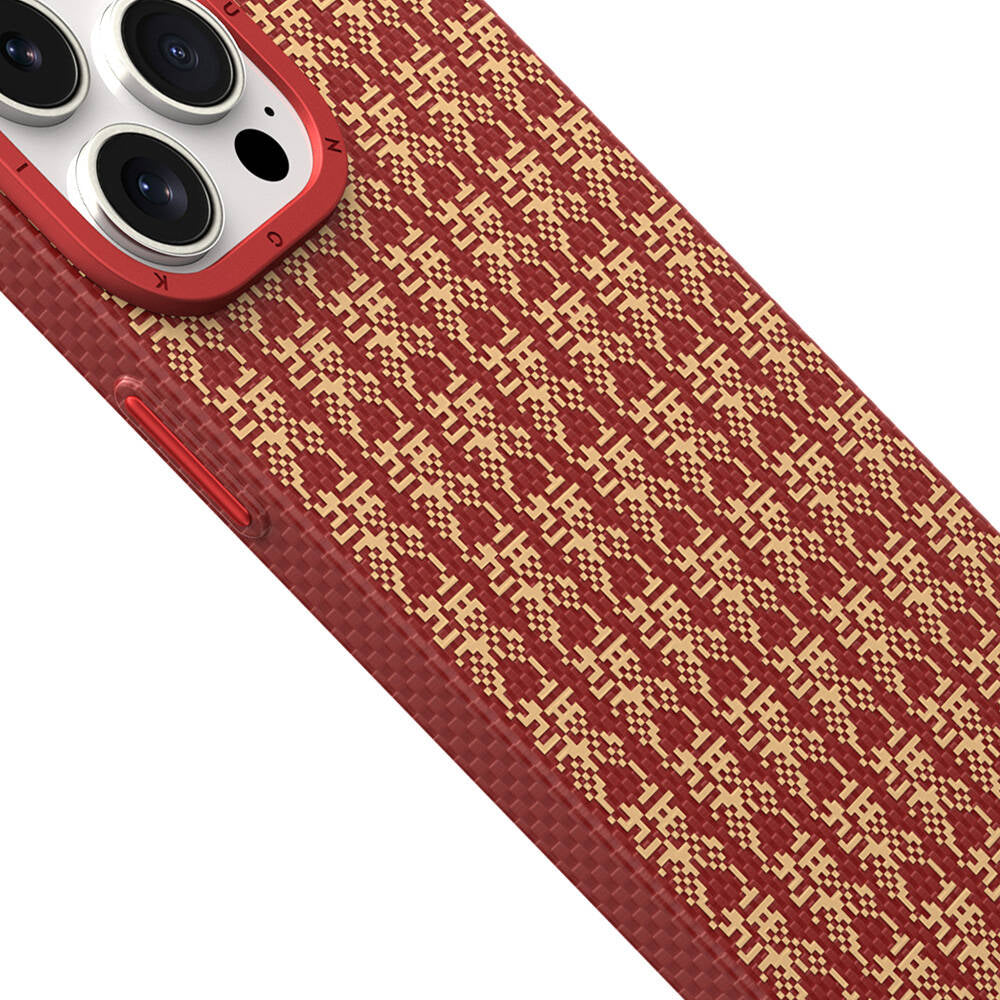 Apple iPhone 15 Pro Kılıf M-safe Şarj Özellikli Kevlar 1500D Youngkit Auspicious Loong Serisi Kapak Kırmızı
