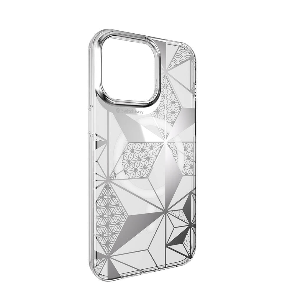 Apple iPhone 15 Pro Max Kılıf M-safe Şarj Özellikli Çift IMD Baskılı Lisanslı Switcheasy Artist-M Asanoha Kapak Gri