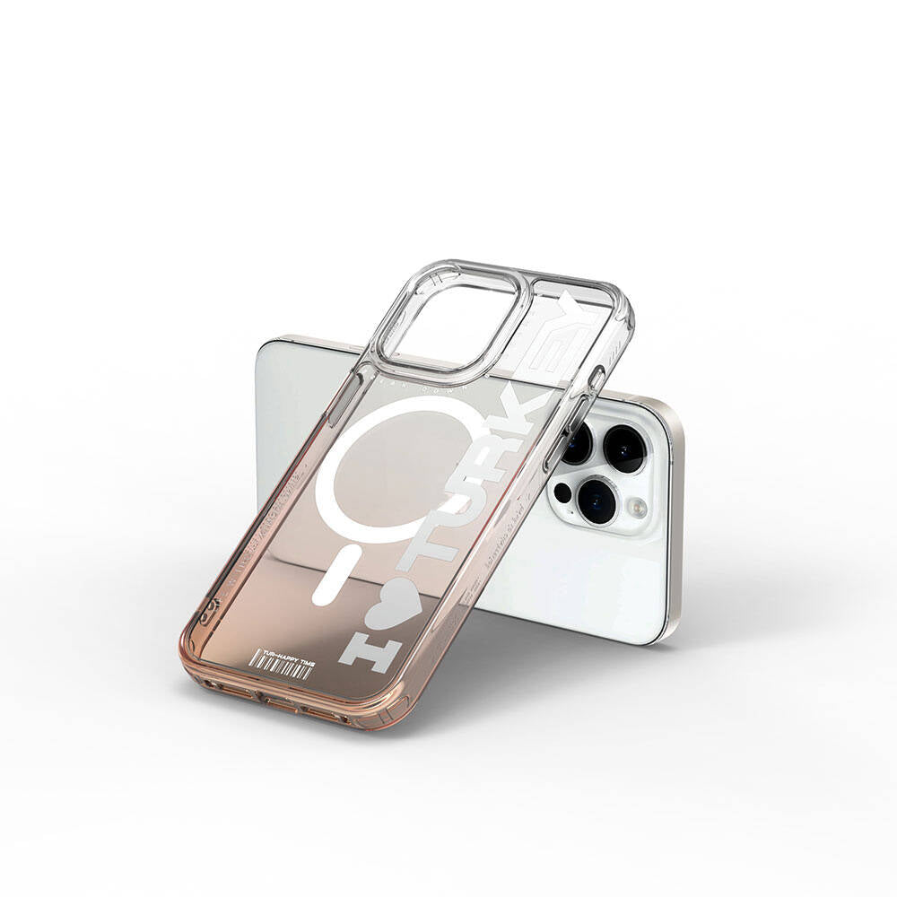 Apple iPhone 15 Pro Max Kılıf M-safe Şarj Özellikli Transparan Renk Geçişli Wiwu Turkey C Serisi Kapak Turuncu