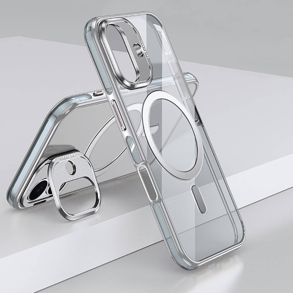 Apple iPhone 16 Plus Kılıf M-safe Şarj Özellikli Wlons Standlı Efsane Kapak Gri