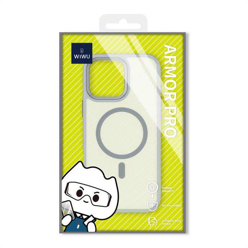 Apple iPhone 16 Pro Kılıf Wiwu FGG-012 ArmorPro Serisi M-safe Şarj Özellikli Parmak İzi Bırakmayan Kılıf Gri