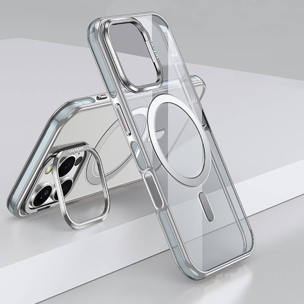 Apple iPhone 16 Pro Max Kılıf M-safe Şarj Özellikli Wlons Standlı Efsane Kapak Gri