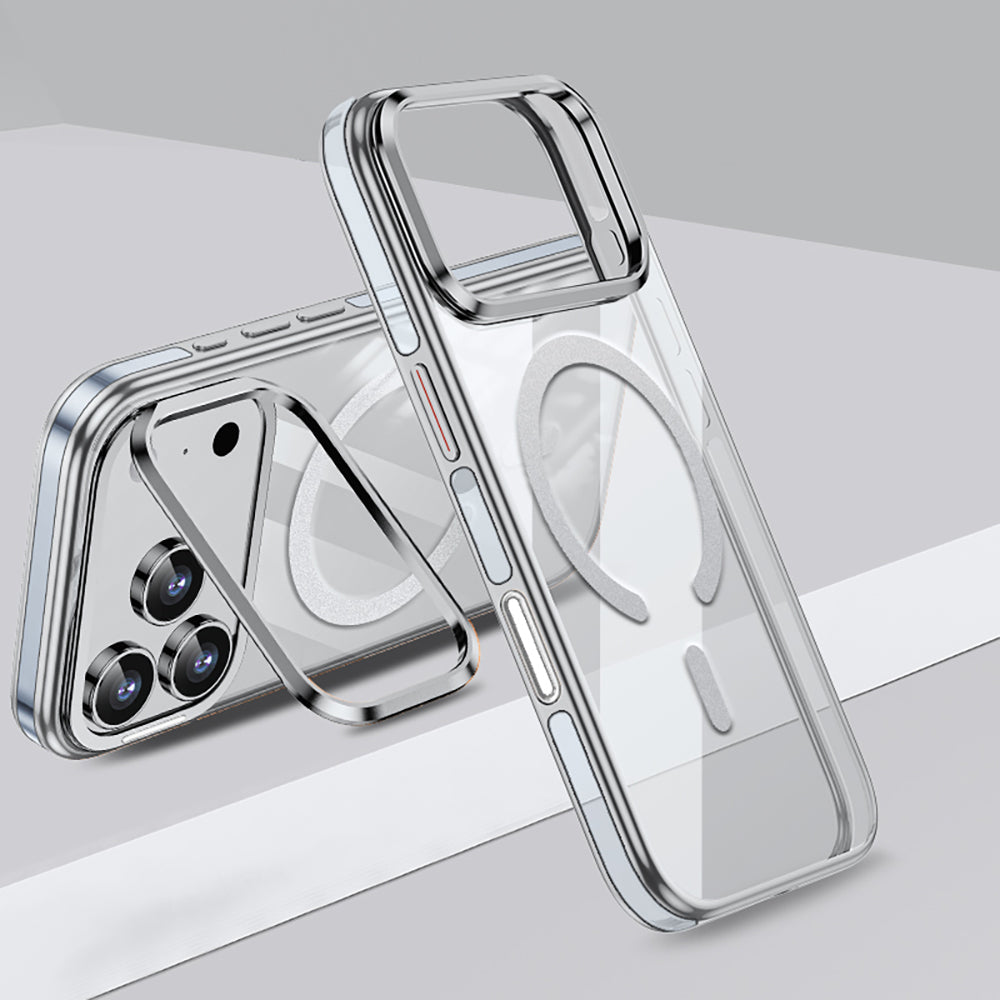 Apple iPhone 17 Pro Kılıf M-safe Şarj Özellikli Wlons Standlı Efsane Kapak Gümüş