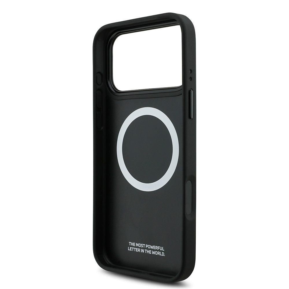 Apple iPhone 17 Pro Max Kılıf BMW Orjinal Lisanslı M-safe Şarj Özellikli Metal BMW ve M Logolu PU Karbon Tasarımlı Kapak Siyah