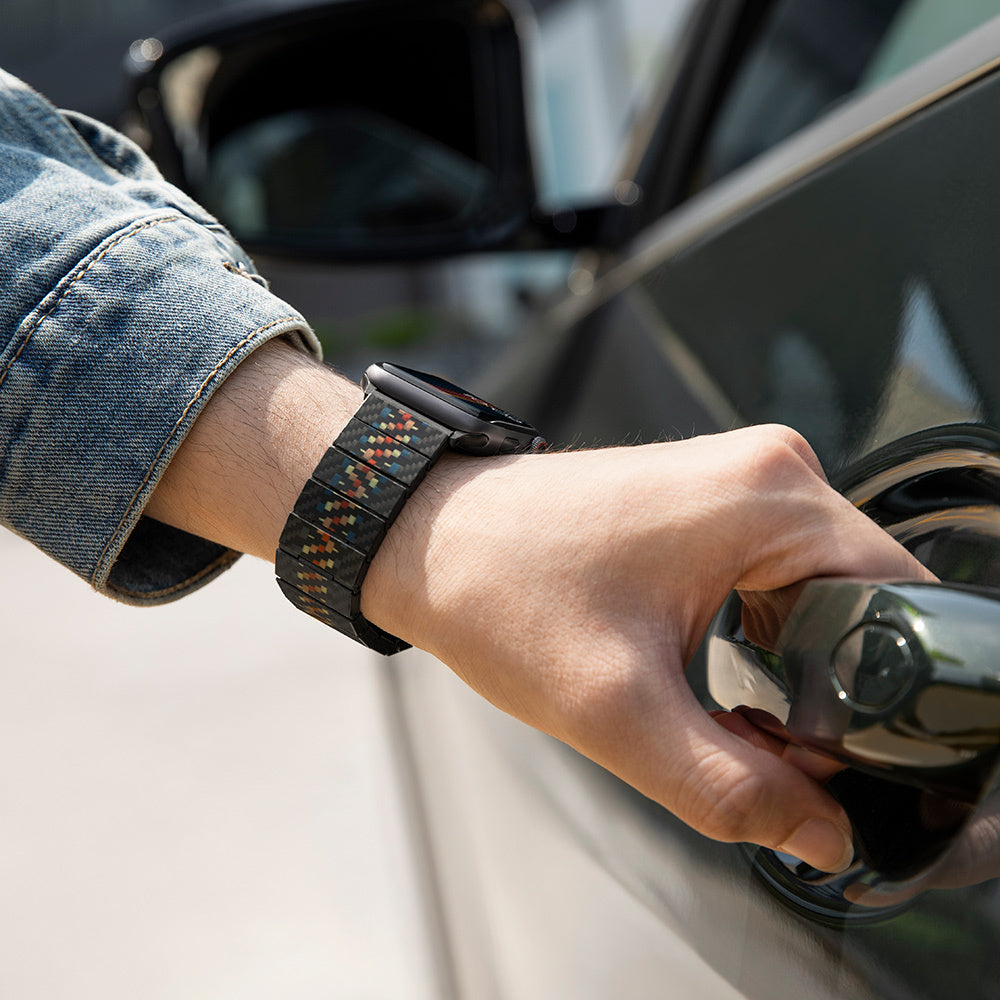 Apple Watch Serisi Uyumlu Aramid Fiber ve Karbon Fiber Pitaka Modern Serisi Rhapsody Universal Kordon Siyah