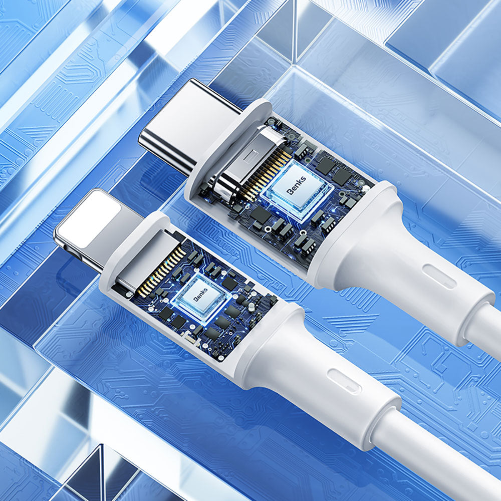 Benks D45 Type-C to Lightning PD Hızlı Şarj ve Data Kablo 480Mbps 2 Metre Beyaz