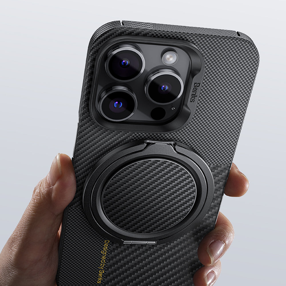 Benks'in karbon fiber tasarımı sayesinde cihazınızın inceliğinden ödün vermeden maksimum koruma sağlarsınız. Sadece 0.39 cm kalınlığında ve 22 gram ağırlığında olan bu stand, telefonunuzu taşımayı son derece kolay hale getirir. Hem şık hem de hafif yapısıyla her an yanınızda.