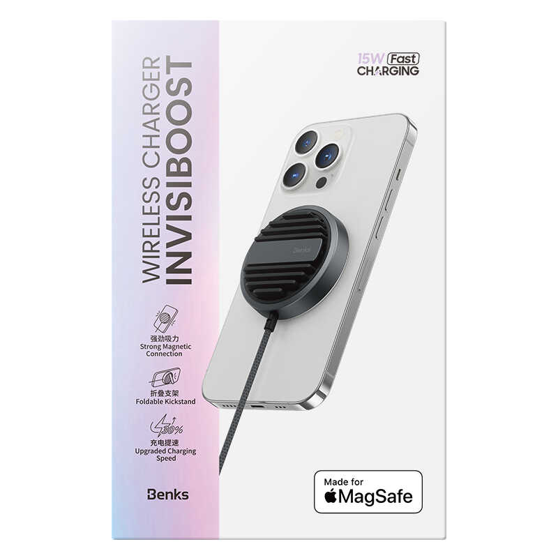 Benks MFM01 MFI Sertifikalı Standlı 15W Hızlı Şarj Özellikli M-safe PD Wireless Şarj Aleti Siyah