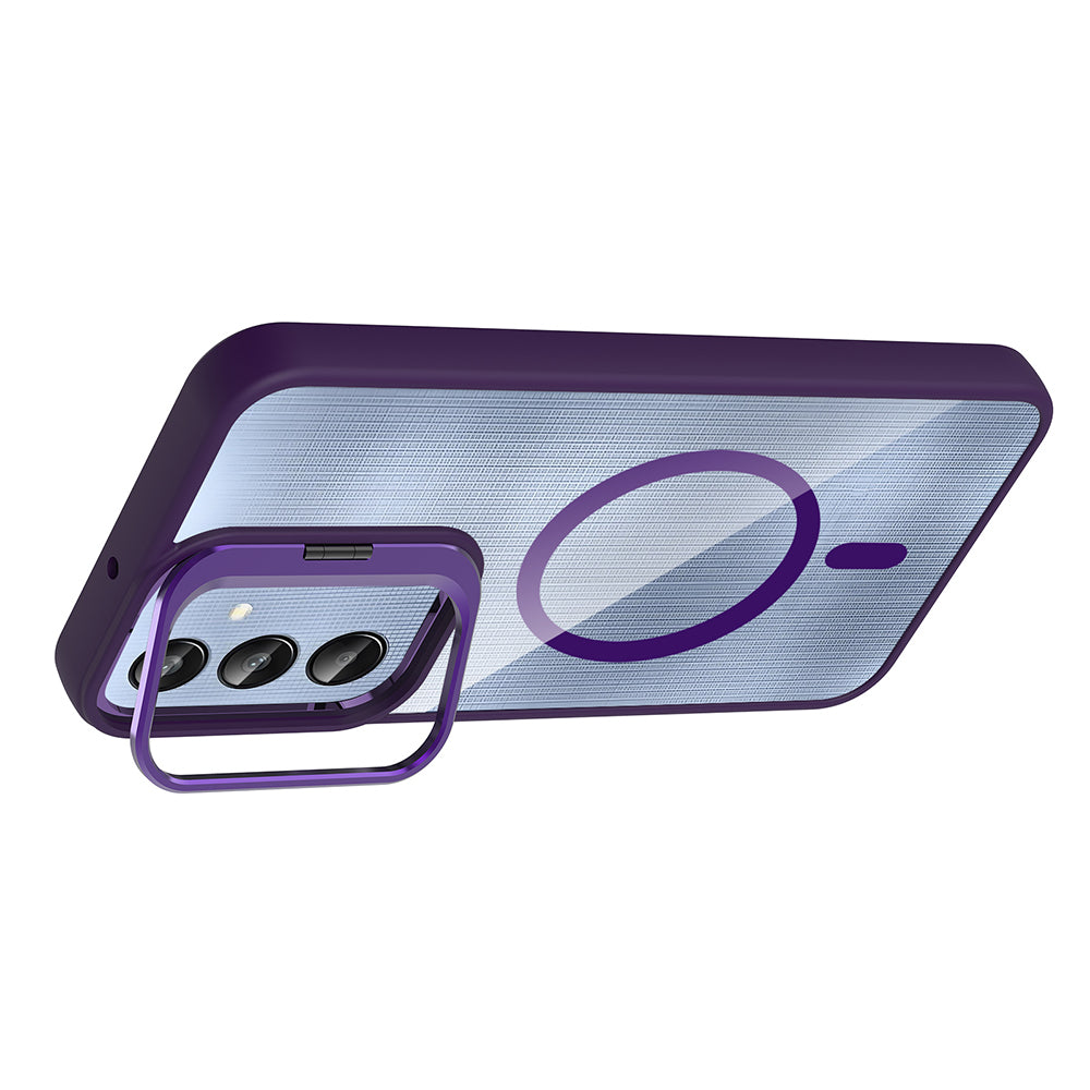 Galaxy A16 Kılıf Standlı ve Kamera Lens Hediyeli M-Safe Şarj Özellikli Zore Etro Kapak