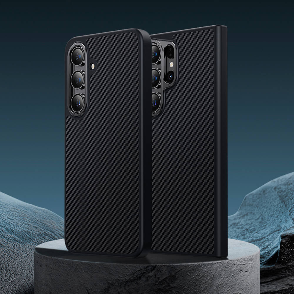 Galaxy S24 Kılıf Karbon Fiber M-safe Şarj Özellikli Benks Hybrid ArmorPro 600D Kevlar Kapak Siyah