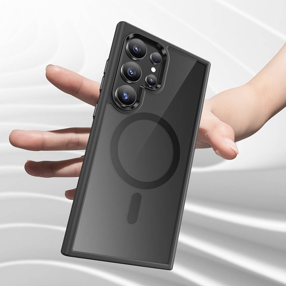 Galaxy S24 Ultra Kılıf M-safe Şarj Özellikli Şeffaf Arka Yüzey Benks MagClap TPU Çerçeve Kapak Gri