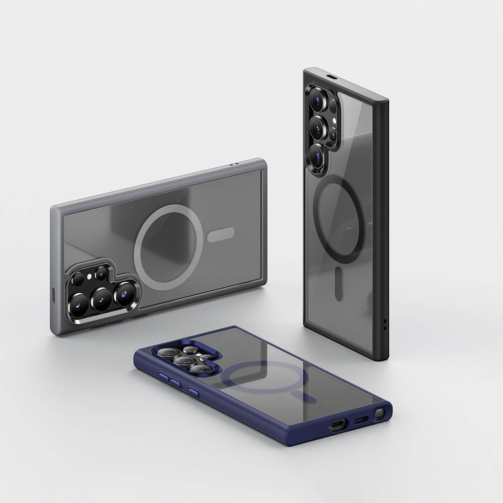 Galaxy S24 Ultra Kılıf M-safe Şarj Özellikli Şeffaf Arka Yüzey Benks MagClap TPU Çerçeve Kapak Mavi