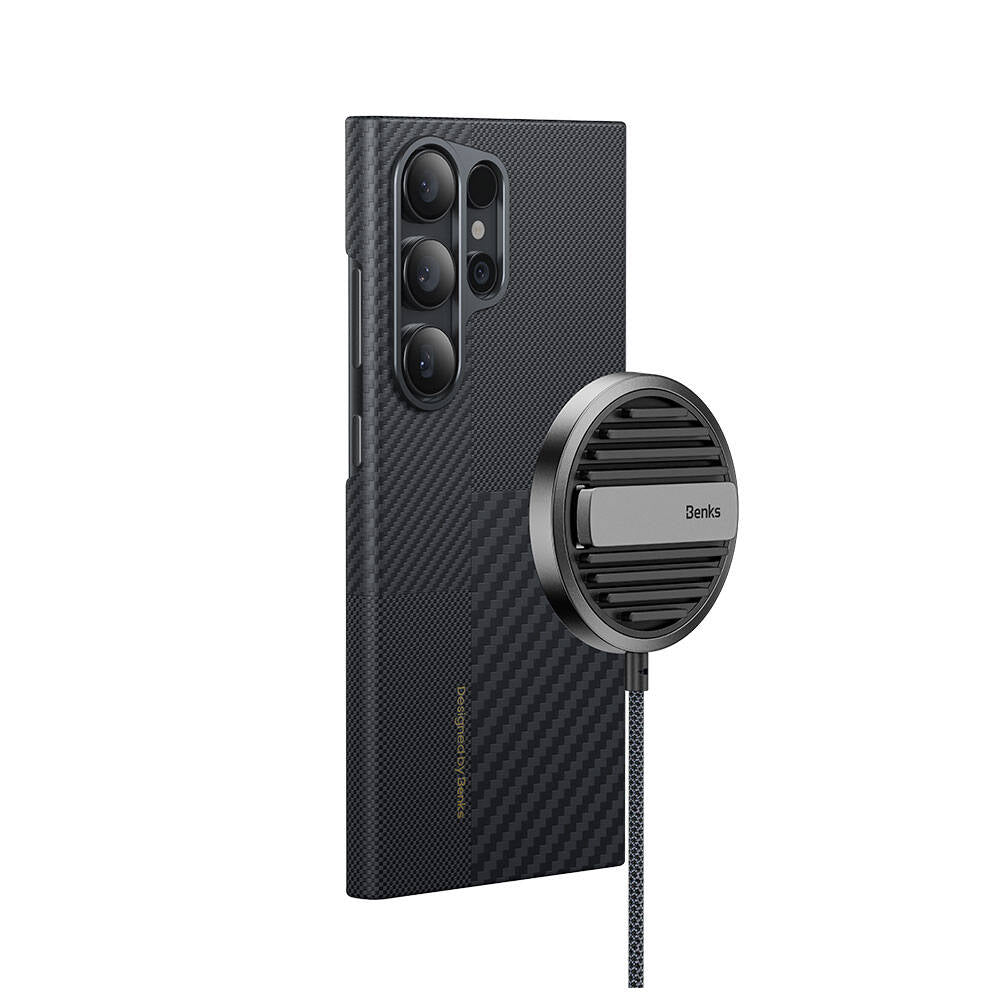 Galaxy S24 Ultra M-safe Şarj Özellikli Karbon Fiber Benks Montage ArmorAir Kevlar Kapak Siyah