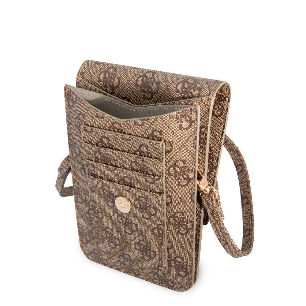 Guess Orjinal Lisanslı 4G Desenli Büyük 4G Logolu 5 Hazneli Askılı Mıknatıs Kapaklı Çanta Kahverengi