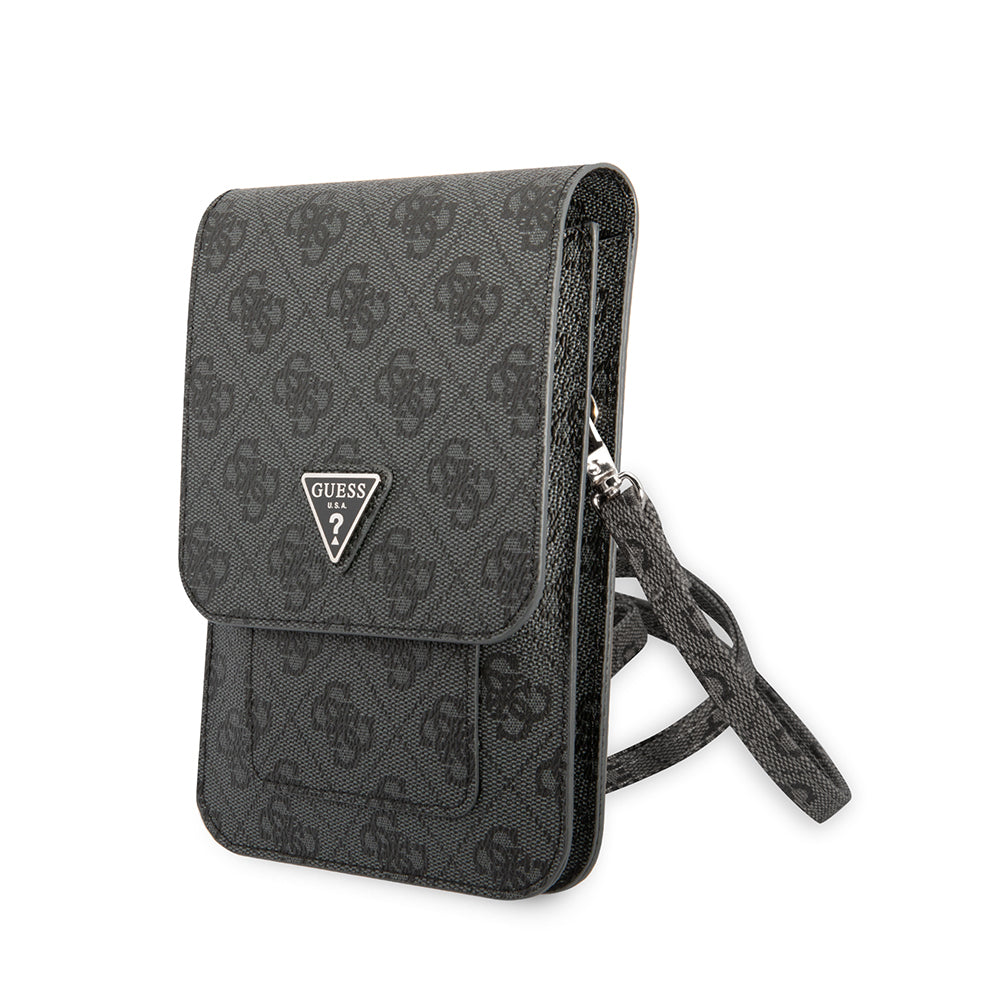 Guess Orjinal Lisanslı 4G Desenli Üçgen Logolu 5 Hazneli Askılı Mıknatıs Kapaklı Çanta Siyah