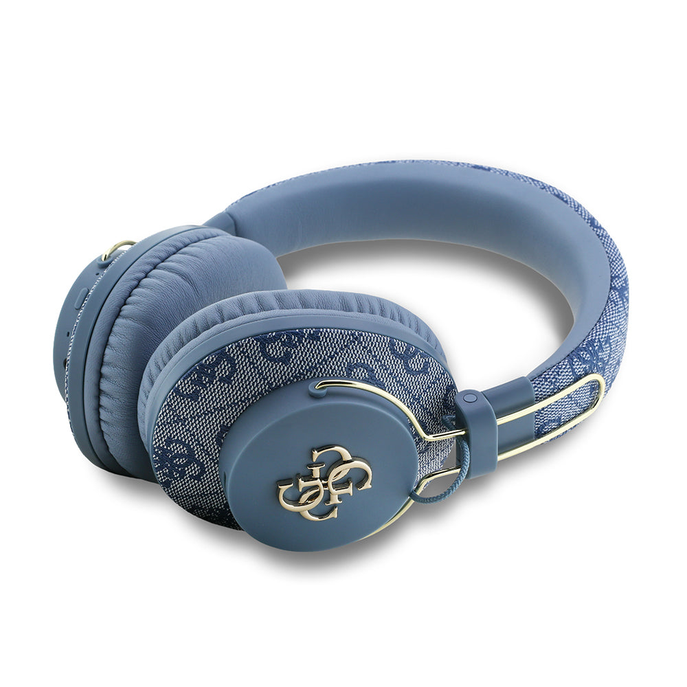 Guess Orjinal Lisanslı PU 4G Desenli Büyük Metal Logolu Kulak Üstü Bluetooth Kulaklık Mavi