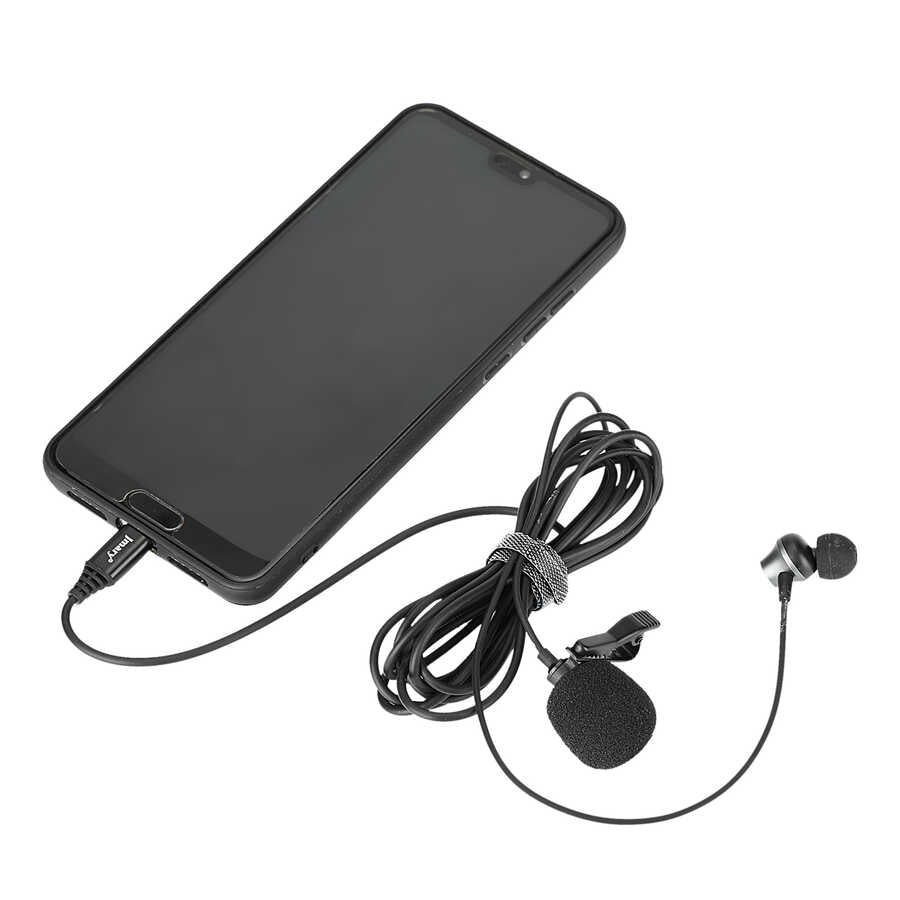 Yaka klipsli çok yönlü kondenser mikrofon çoğu akıllı telefon, ses kayıt cihazı ve mobil cihazlarla da uyumludur