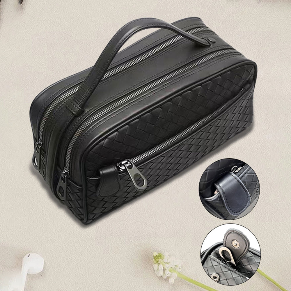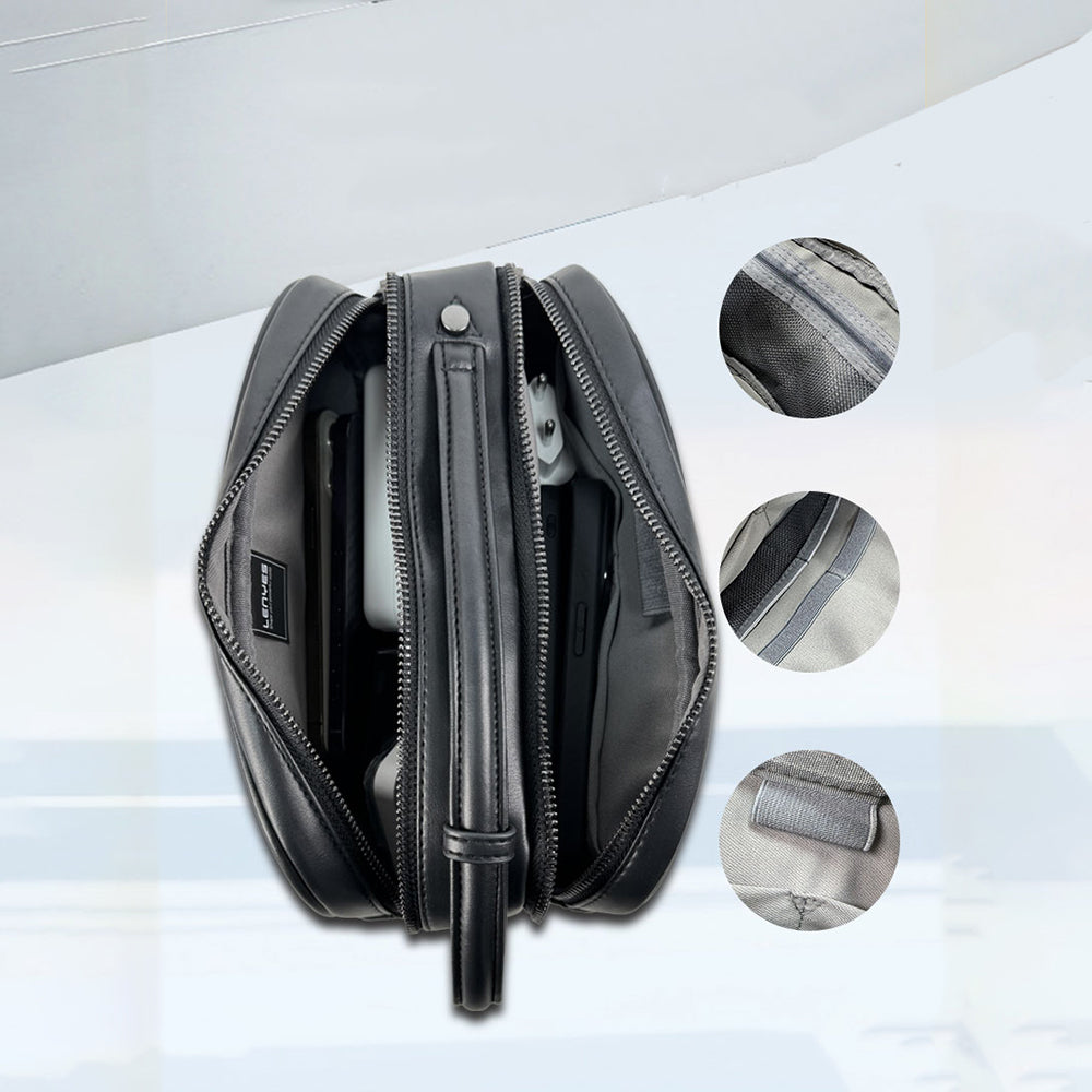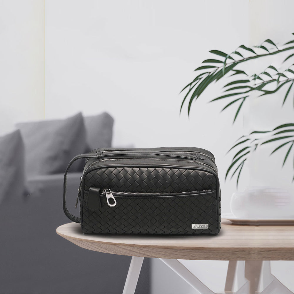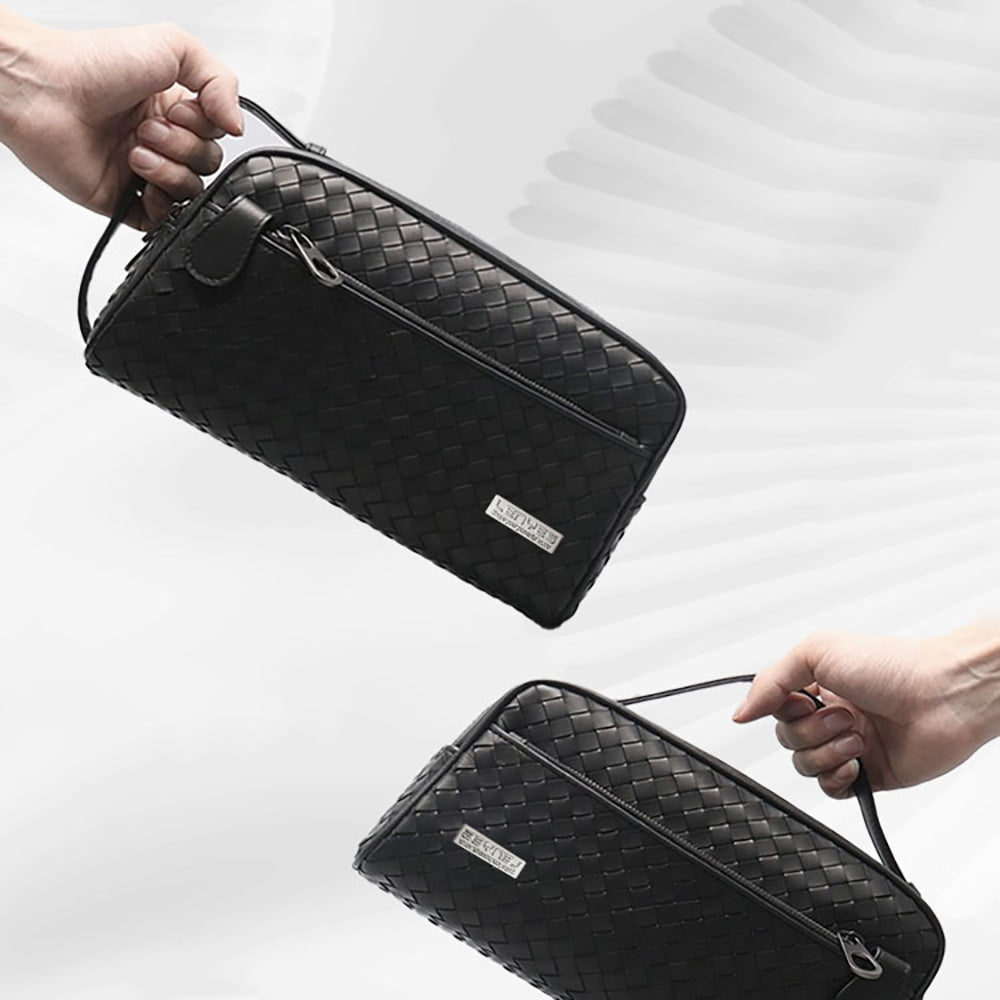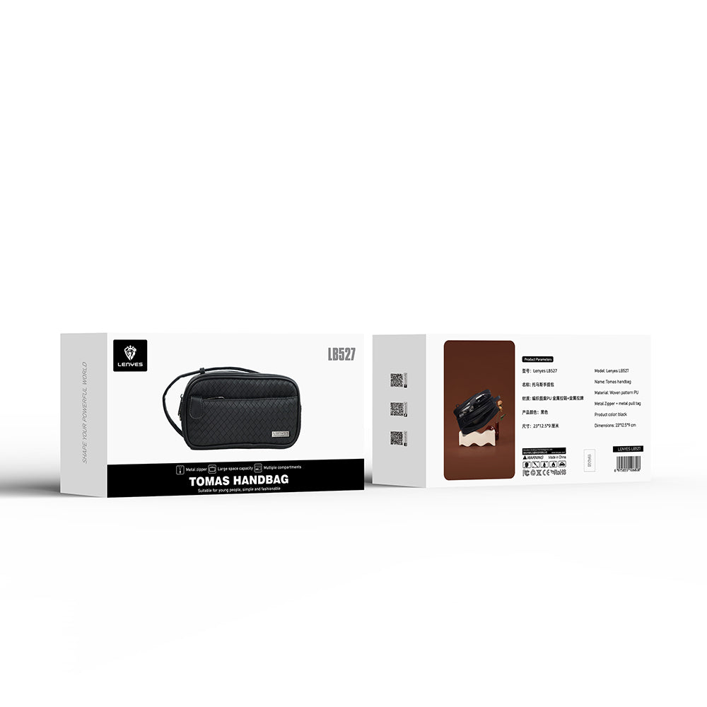 Lenyes LB527 Tomas Serisi Dokuma PU Mat Deri Bilek Tasarımlı Çizilmeye Karşı Dayanıklı Aksesuar Çantası Siyah