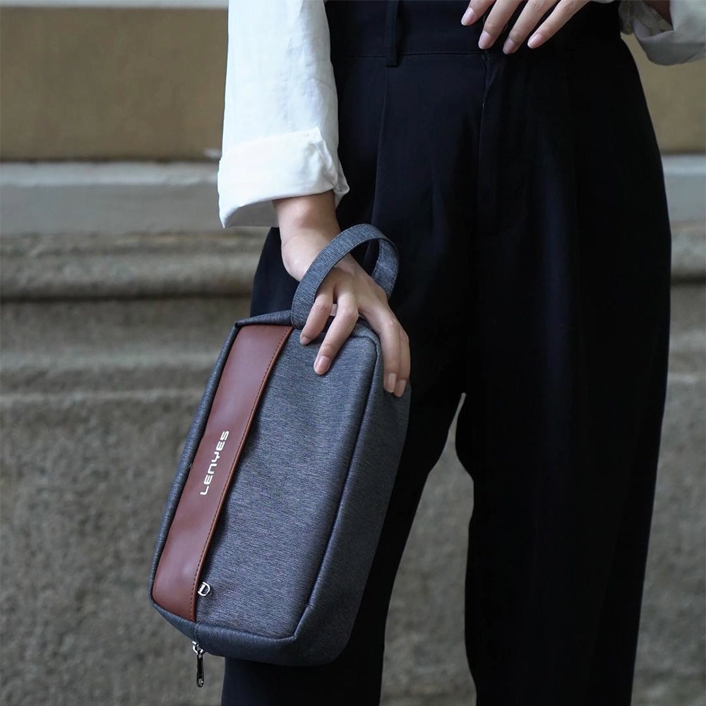 Lenyes LB541 Rambler Storage Serisi aksesuar çantası, sade ama şık tasarımıyla dikkat çekiyor. Günümüz moda çizgilerine uyum sağlayan zarif hatları ve kontrast renk kombinasyonu ile hem işlevsel hem estetik bir görünüm sunar. Günlük hayatta ister takım elbise ile işe giderken, ister spor kombinle şehir turuna çıkarken yanınızda taşımaktan keyif alacağınız bu çanta, tarzınıza sofistike bir dokunuş katar.