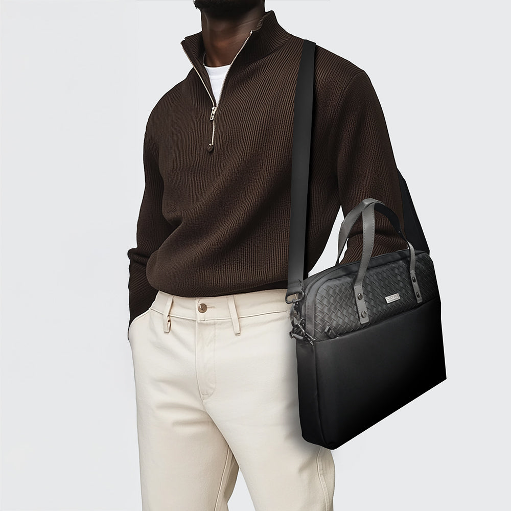 Lenyes LB552 Voyagers Serisi Su Geçirmez Polyester Kumaş Çıkarılabilir Omuz Askılı 13-14 inç Laptop Çantası Siyah