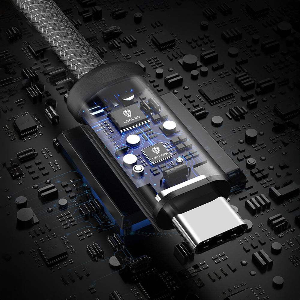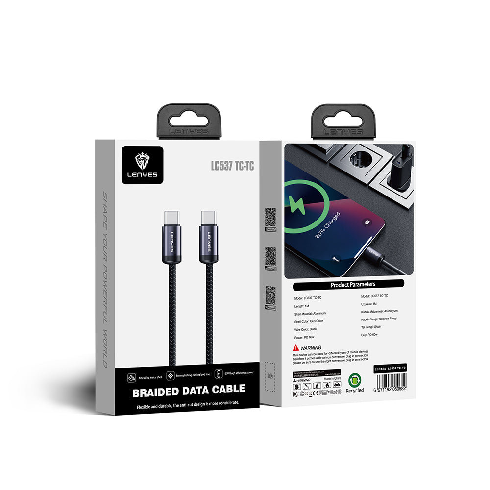 Lenyes LC537, yüksek kaliteli alüminyum alaşım konnektörleri ve örgülü kablo yapısıyla dayanıklılığı ön planda tutan bir tasarıma sahiptir. Kalın saf bakır çekirdek yapısı sayesinde yüksek hızlı şarj desteği sunarken, esnek ve dayanıklı kablo tasarımı kopmalara ve bükülmelere karşı ekstra direnç sağlar.