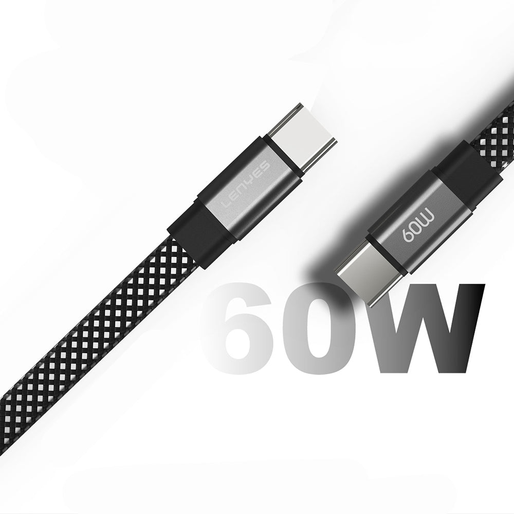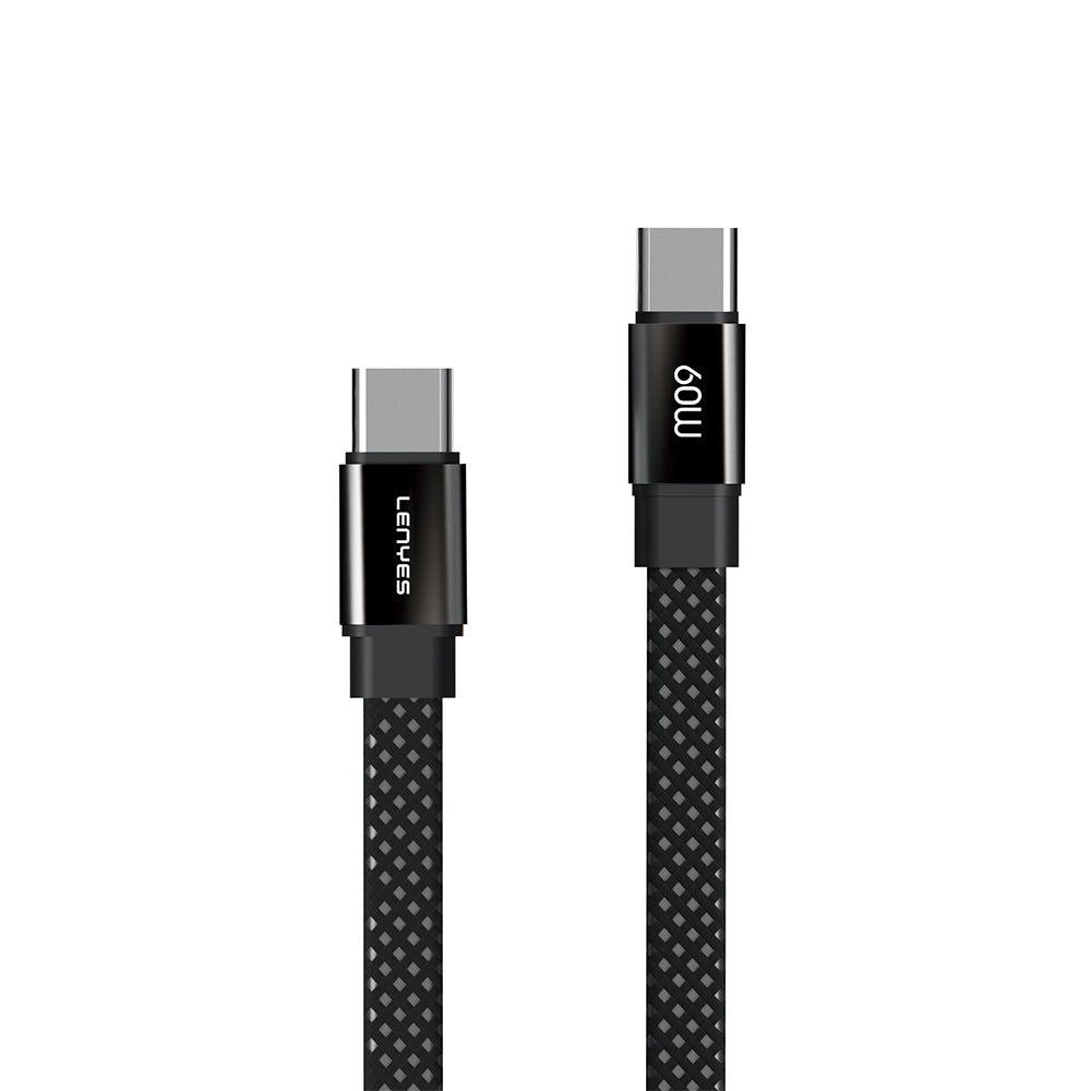 Lenyes LC538 Type-C to Type-C Hızlı Şarj Özellikli 48D Aramid Fiber Örgü Tasarımlı Data ve Şarj Kablosu 60W 1M Siyah