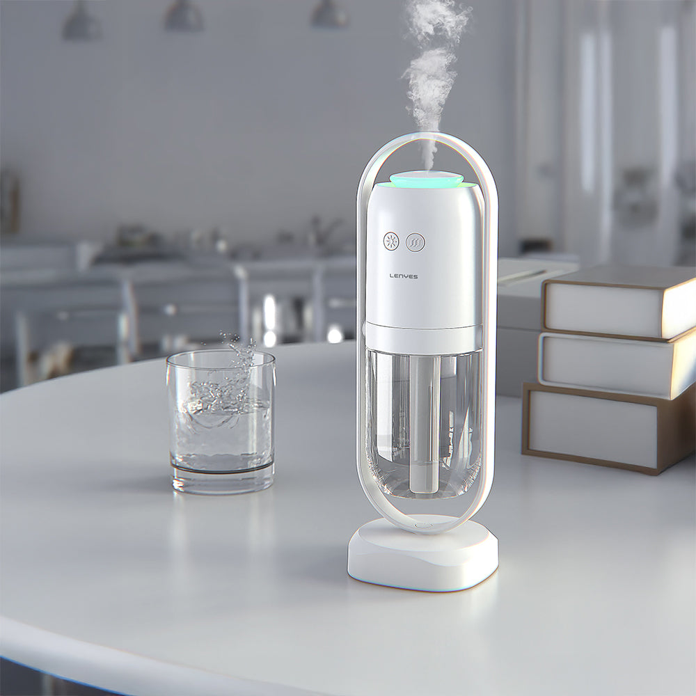 Lenyes LHU04 Kum Saati Tipi 360 Derece Dönebilen RGB Atmosfer Işıklı Sessiz Hava Nemlendirici Beyaz