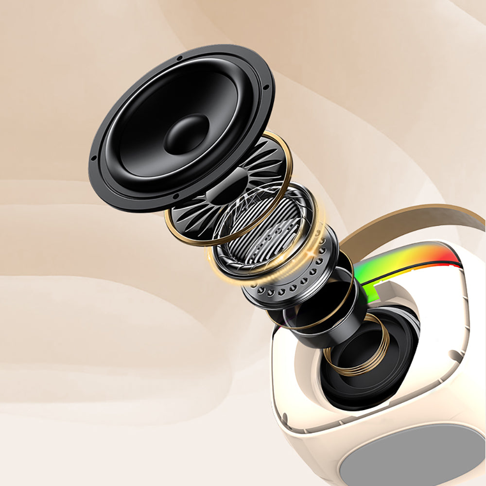 Güçlü 5W hoparlör ve 500mAh mikrofon kapasitesiyle net ve etkileyici bir ses deneyimi sunar. Kablosuz versiyonu 5.3 ile gecikmesiz ve kesintisiz bağlantının tadını çıkarın. TF kart, U disk ve AUX desteği ile farklı kaynaklardan müzik keyfi yaşamanızı sağlar.