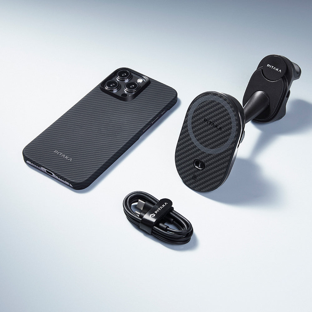 Pitaka MagEZ Pro 2 Magsafe Şarj Özellikli Qi2 Tesla Model Y ve Model 3 Uyumlu Aramid Fiber Araç Telefon Tutucu