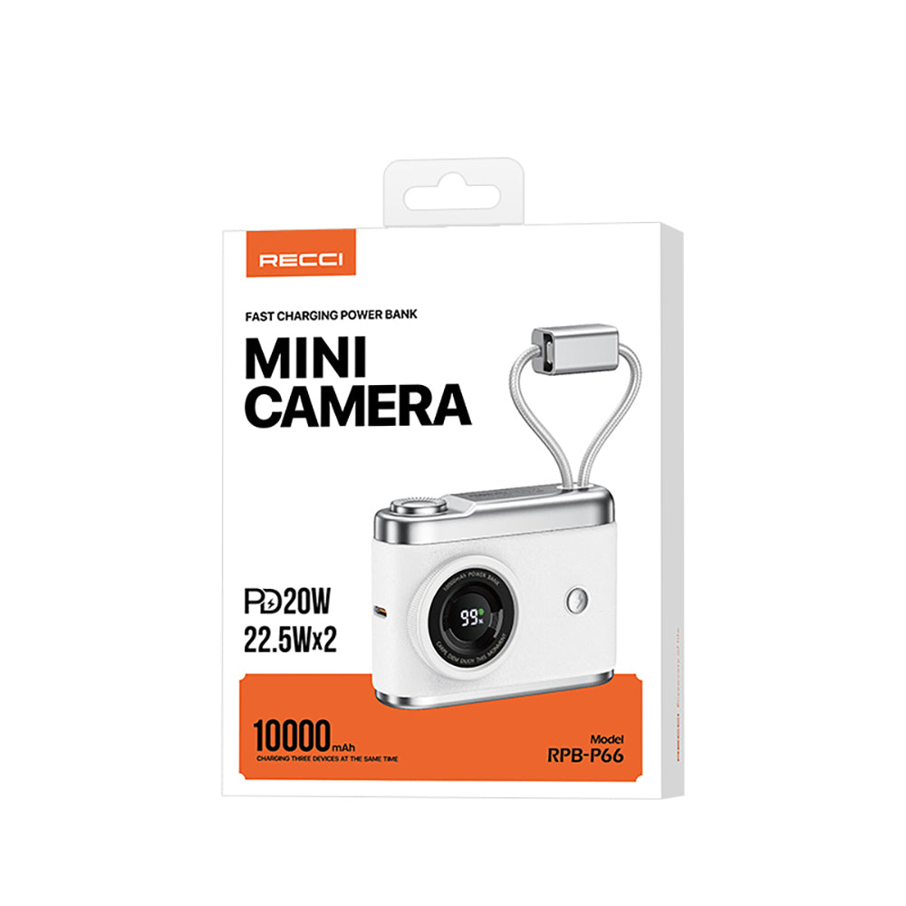 Recci RPB-P66 PD 20W Hızlı Şarj Özellikli Type-C & lightning Kablolu Powerbank 22.5W 10.000mAh Beyaz