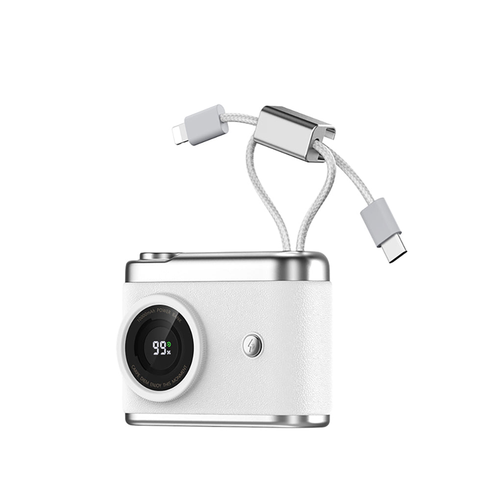 Dijital ekran göstergesi sayesinde cihazın kalan şarj yüzdesini anlık olarak takip edebilirsiniz. Üzerinde entegre olarak gelen çift çıkışlı kablolar (Type-C & Lightning) ile aynı anda birden fazla cihazı şarj edebilir, iPhone, iPad, kulaklık veya farklı akıllı telefonlarınızı tek bir kaynakla enerjiyle buluşturabilirsiniz. Sabah yoğun işe giderken telefonunuzu, kulaklığınızı ve ikinci telefonunuzu tek seferde şarj etme rahatlığı sunar.
