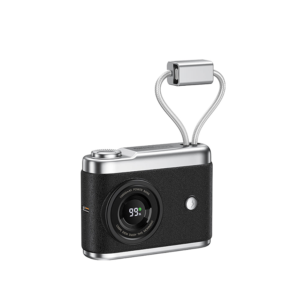 Recci RPB-P66, klasik kamera görünümündeki şık tasarımıyla farkını ortaya koyuyor. Deri dokulu dış yüzeyi, hem zarif bir görünüm sunar hem de elde tutuş konforunu artırır. Sadece kart boyutundaki kompakt yapısıyla cebinizde, çantanızda veya avuç içinde rahatlıkla taşınabilir. İster evde çalışma masanızda kullanın, ister dışarıda gün boyu telefonunuzu şarj etmek için yanınızda taşıyın; bu şarj cihazı her zaman şıklığınızdan ödün vermez.