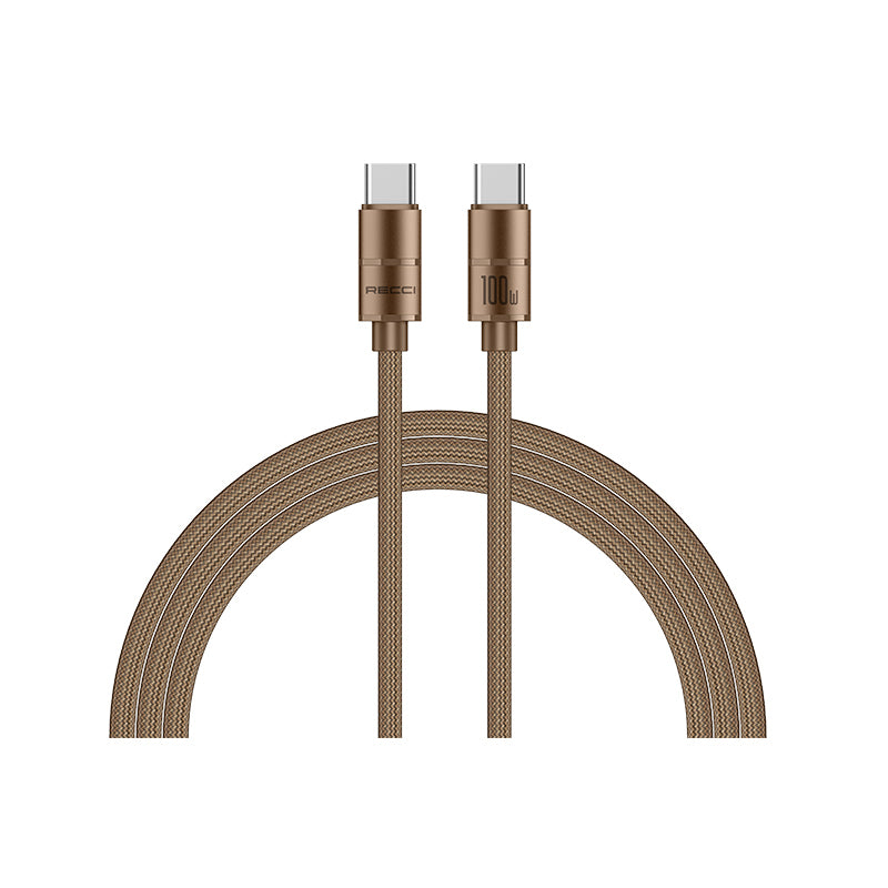 Recci RS08CC Warrior Serisi Type-C to Type-C 100W Hızlı Şarj Özellikli Data ve Şarj Kablosu 1.2M Desert Gold