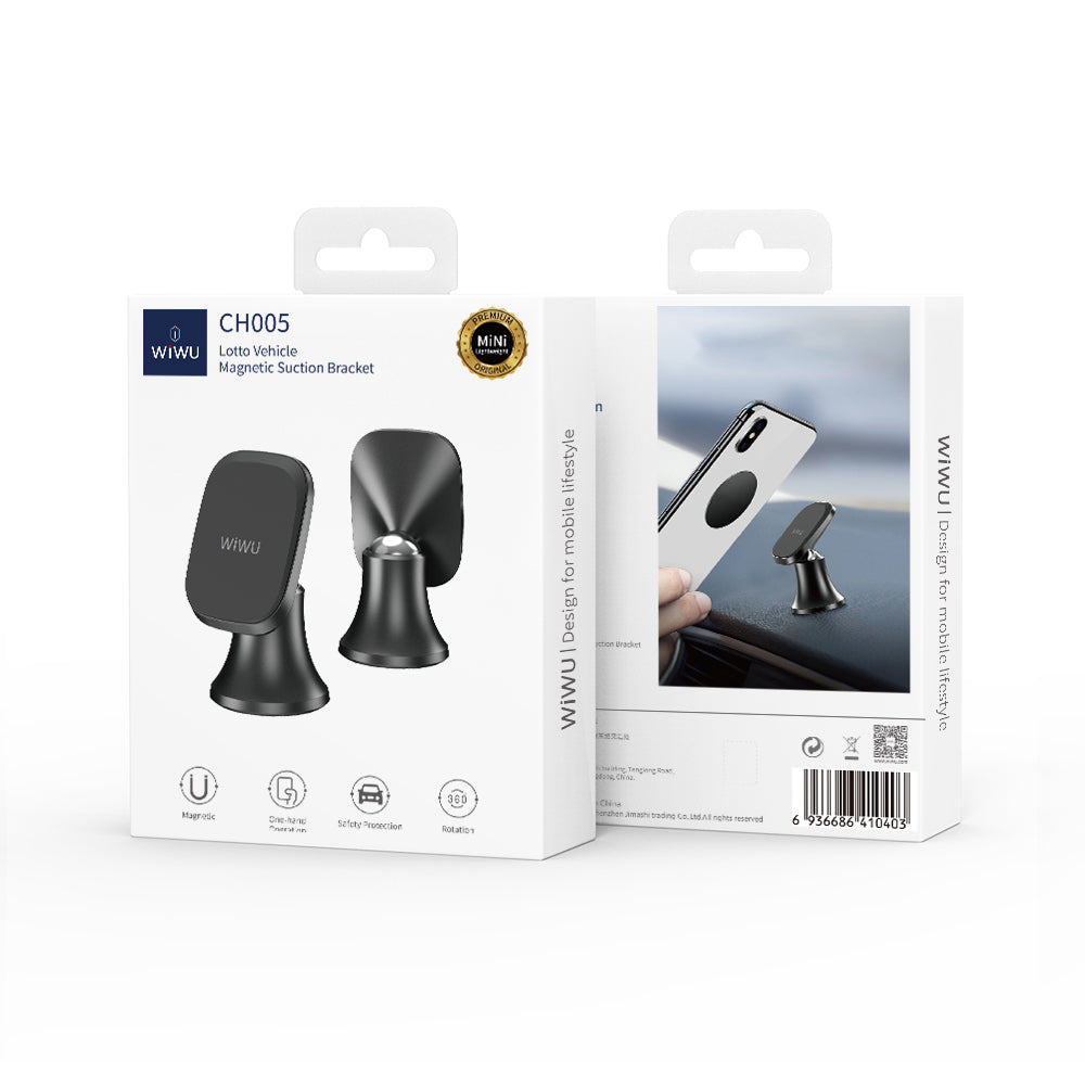Wiwu CH005 360 Derece Dönebilen Magnetik Düz Zemin Versiyon Araç Telefon Tutucu Siyah