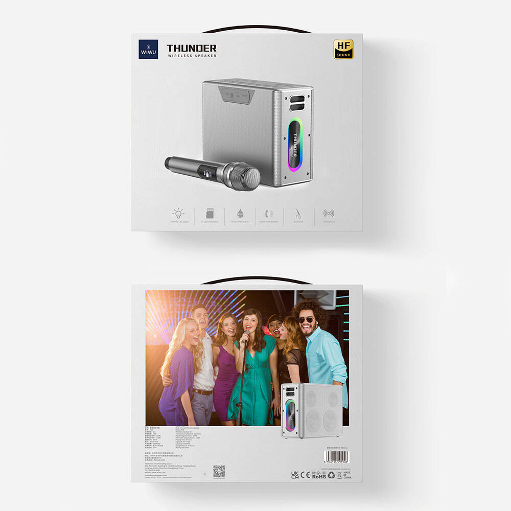 Wiwu P19 Thunder Bluetooth Speaker Hoparlör ve Karaoke Bluetooth Çift Mikrofon Gümüş