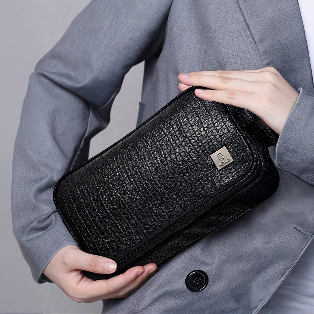 Wiwu Salem Serisi Parmak İzi Kilitli Çok Fonksiyonlu Taşınabilir Mobil Aksesuar Çantası Siyah