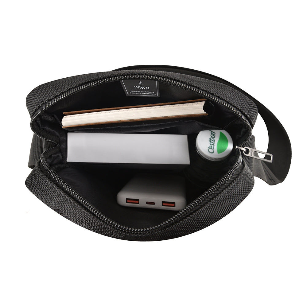 Wiwu Salem Serisi Sling Su Geçirmez Polyester Kumaş Çapraz Askılı Vücut Çantası Siyah