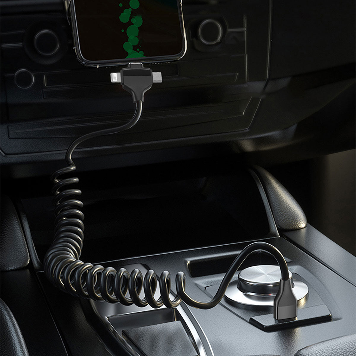 Wiwu Spiral Tasarımlı Micro Type-C ve Lightning 3in1 Spring Spiral Kablo 1m Siyah