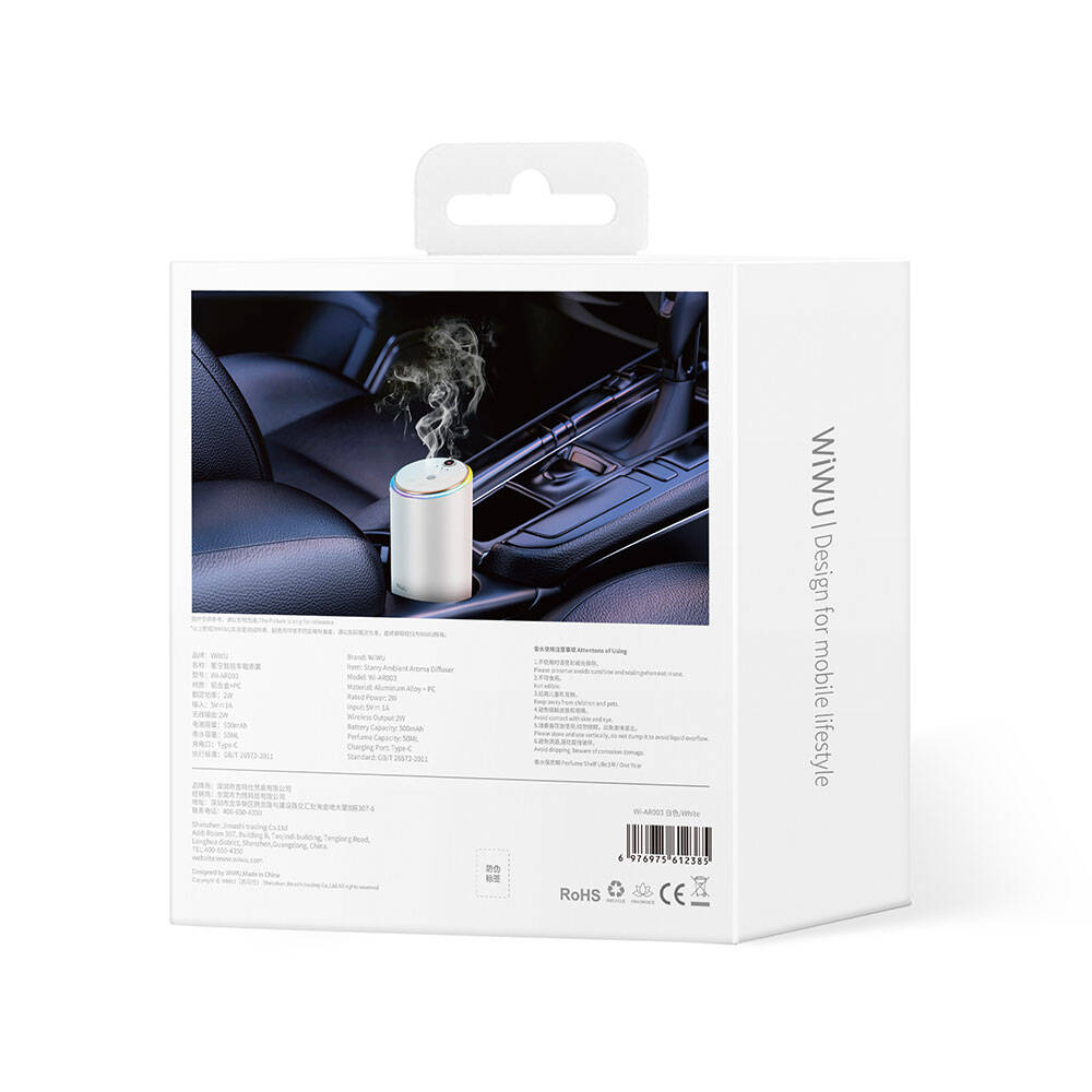 Wiwu Wi-AR003 Yıldızlı Ortam Aydınlatmalı RGB Işıklı Hava Nemlendirici ve Aromalı Araç Koku Difüzörü Beyaz