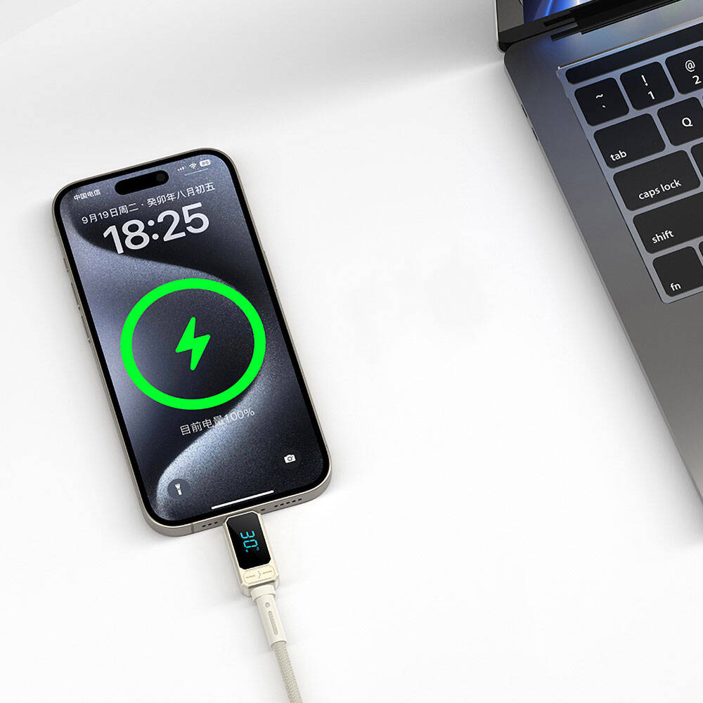 Wiwu Wi-C038 Titan Serisi Lightning to Type-C PD 30W LED Dijital Göstergeli Şarj ve Data Kablosu 1.2M