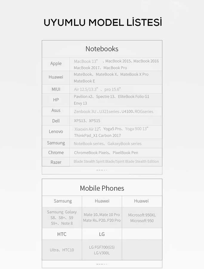 Type-C 3.1 ''Display Port alternatif mod'' destekleyen cihazlarla çalışmaktadır. Lütfen cihazınızda bu desteğin olup olmadığını kontrol ediniz