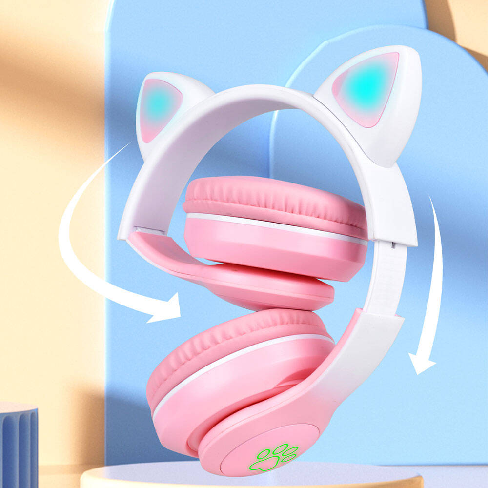 Zore STN-28 Pro Kedi Kulaklı Tasarımlı RGB Işıklı Bluetooth Kulaklık Pembe